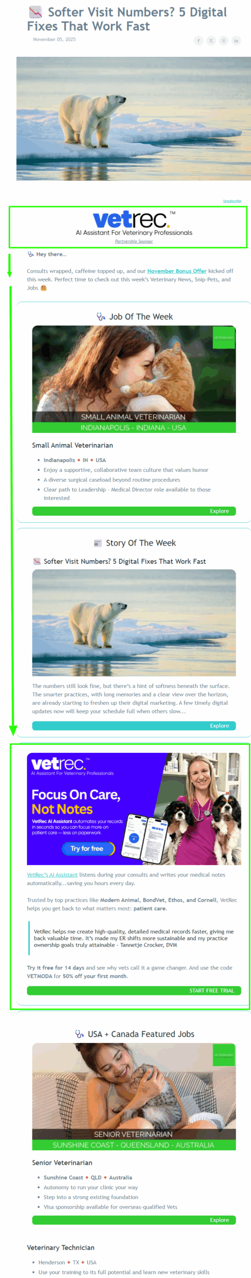 ► Scroll down to view real-world examples of our social media promotions and email placements showcasing veterinary brands like yours.